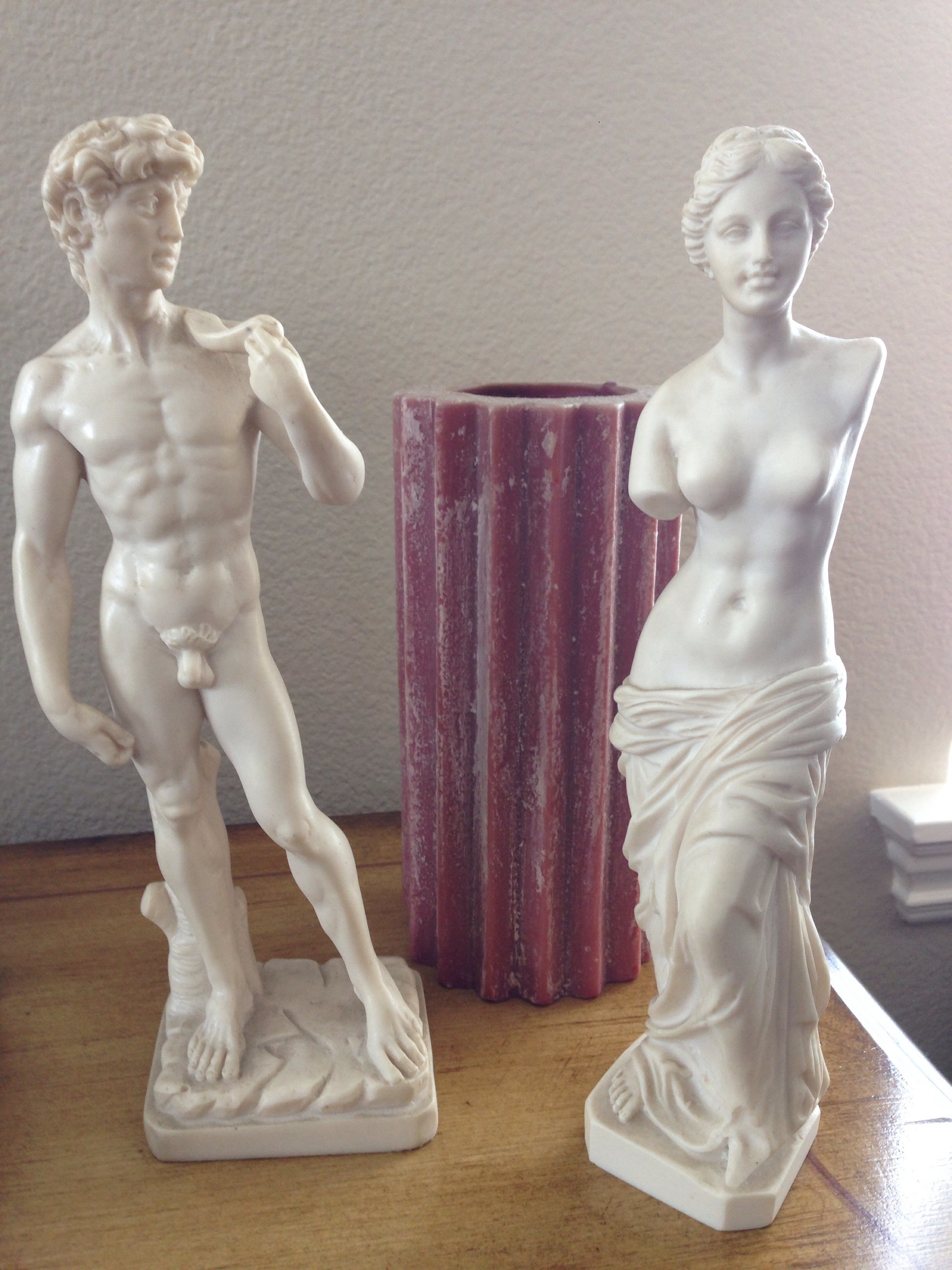 They moved in the early nineties to a small condo that they made no less magical in the course of the years that they lived there. Then they moved again to a large condo in the same complex and transformed that space too. Yet neither place was a castle. Perhaps I was too old to find wonder anymore. Over time, the David and Venus de Milo disappeared. The egg was forgotten. The roses replaced by more current (and realistic plants). Color schemes changed from avocado to forest green. Brown-grouted tile was replaced by granite. Furniture changed hands (I have some); plants have moved up and down the state and sometimes to neighboring states as my Nana gave them to her kids and grandkids (I have some of those too). So many little bits of my imaginary life fallen along the wayside. I didn’t even know I was missing them.